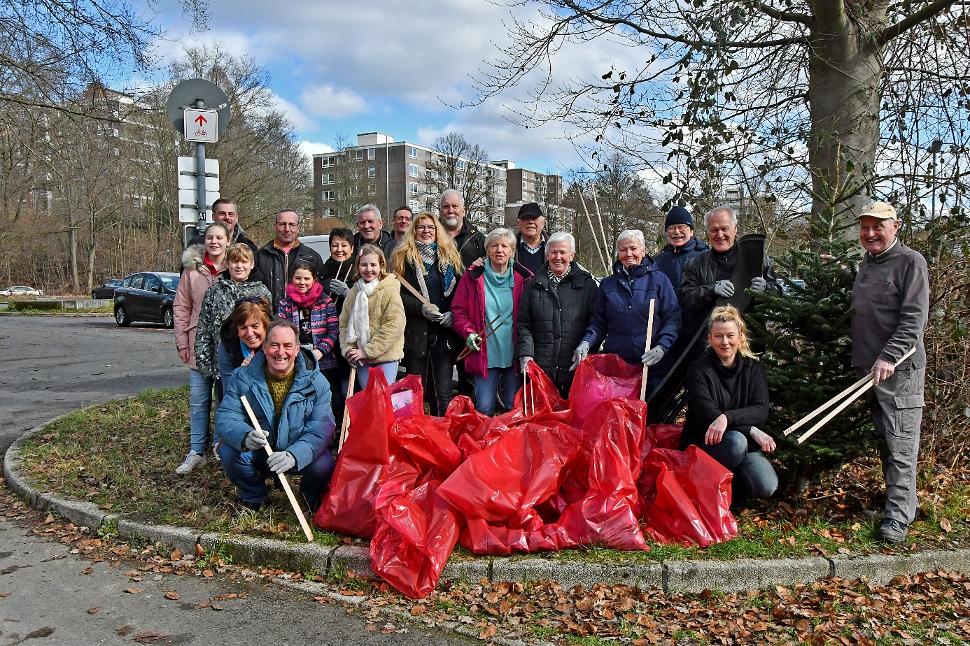Die Kleingärtner machten sich mit Müllsäcken bewaffnet auf die Reinigungstour rund um die Kleingartenanlage und den Schultenweg.